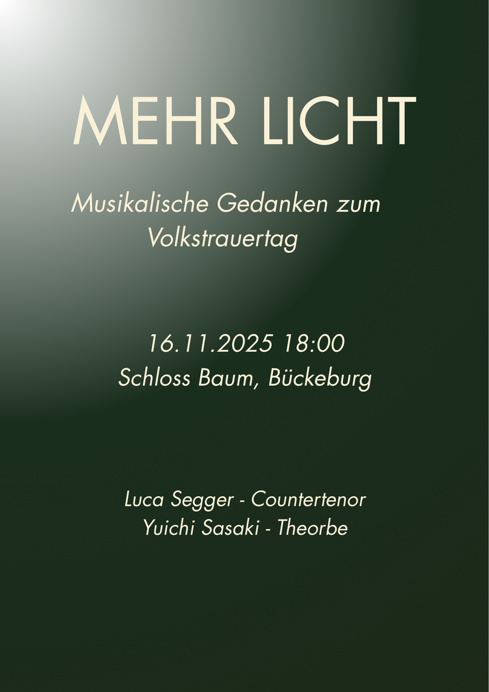 Mehr Licht! Konzert im November. Am Sonntag, 16.11.2025